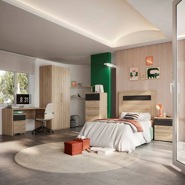 Conjunt dormitori amb capçal de llit de 90 o 105 cm. Armaris i mòduls de diferents mides a conjunt