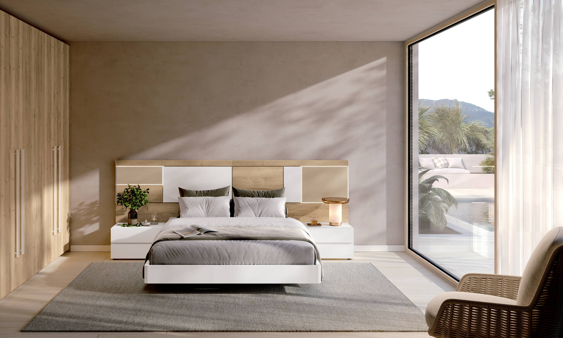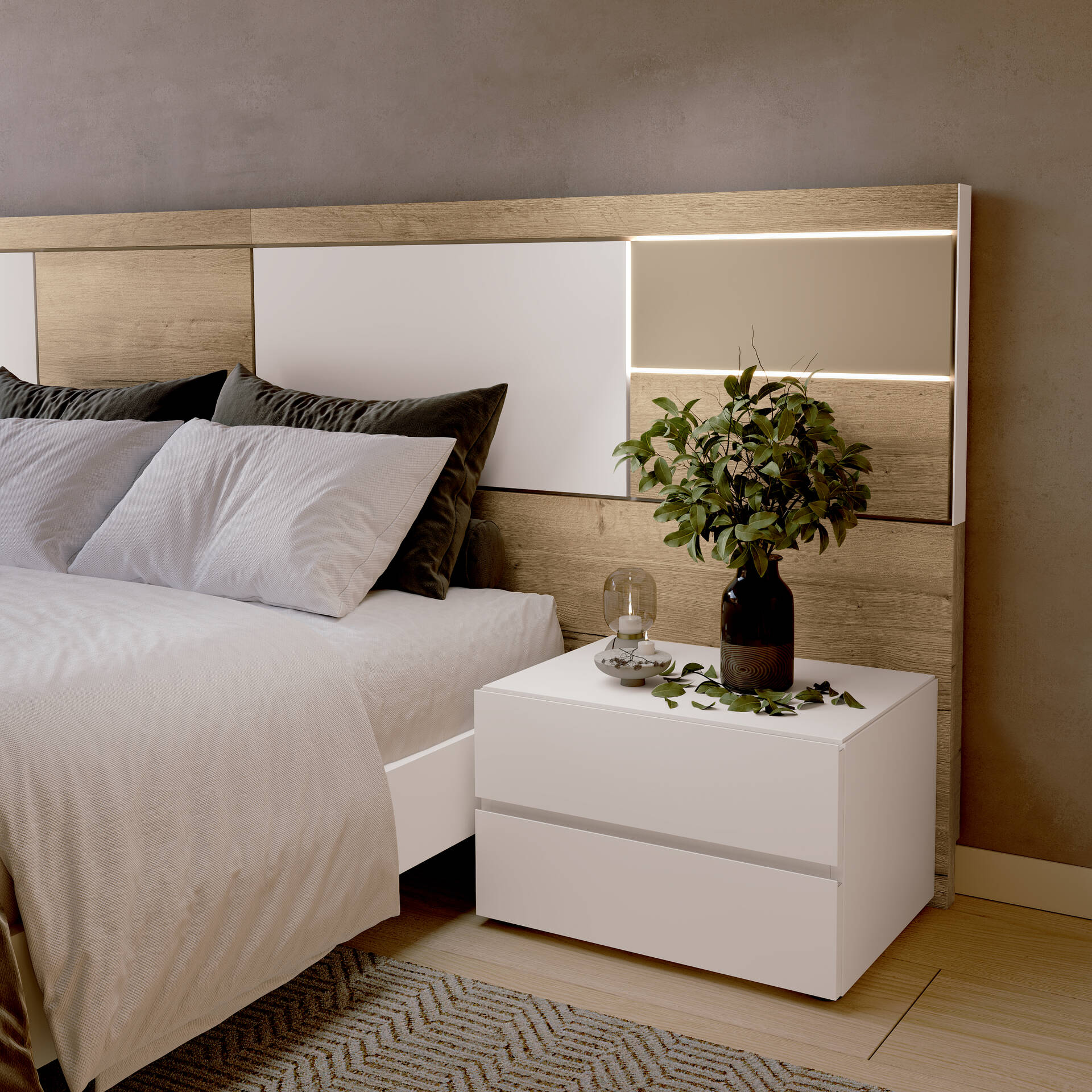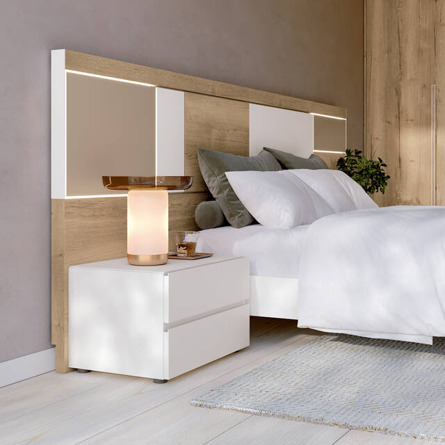 Dormitori modern per matalàs de 135 - 150 - 160 i 180x190 - 200cm amb llum led al capçal opcional, canapè elevable o banyera.