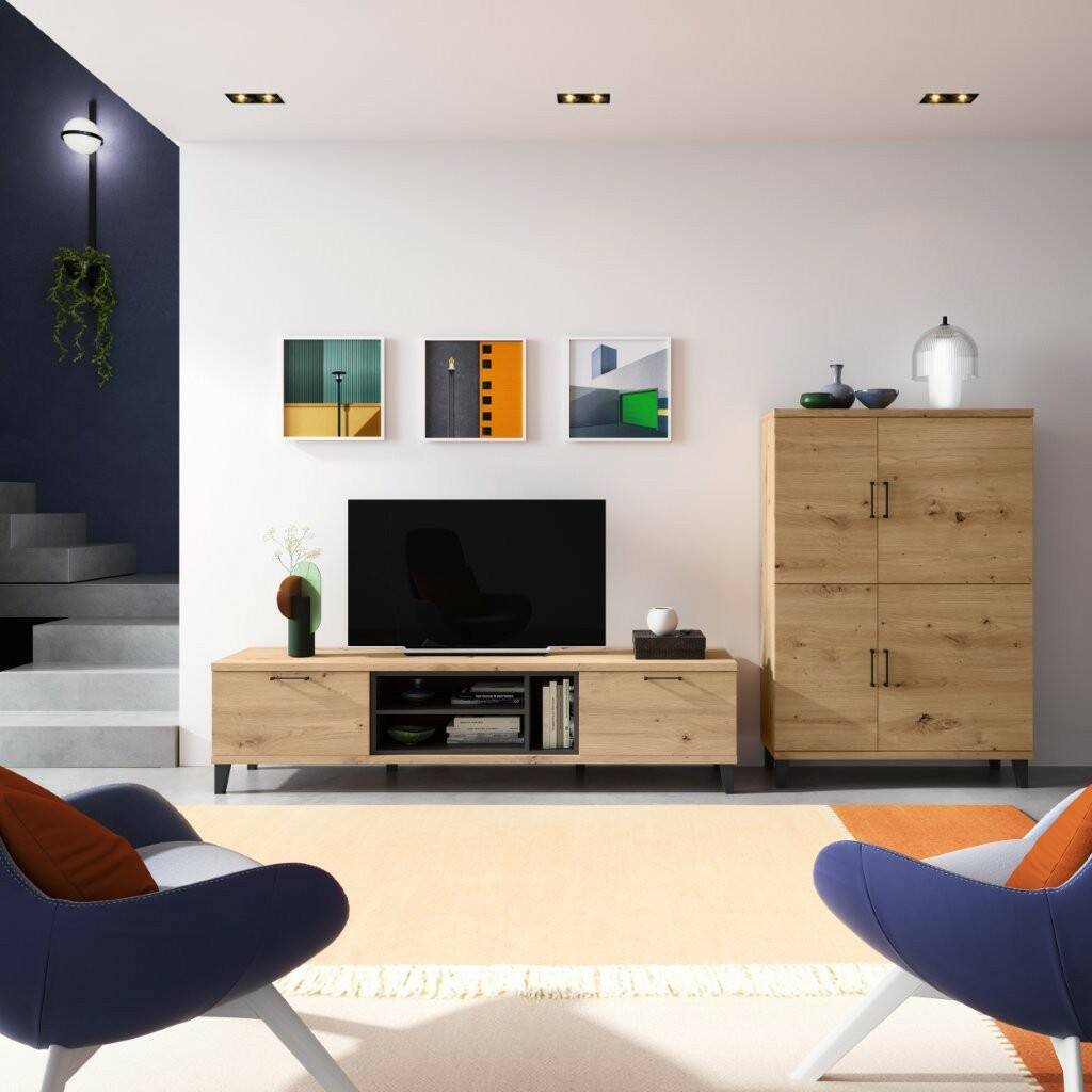 Composició modular de 300 cm. color roure nusos, amb potes negres