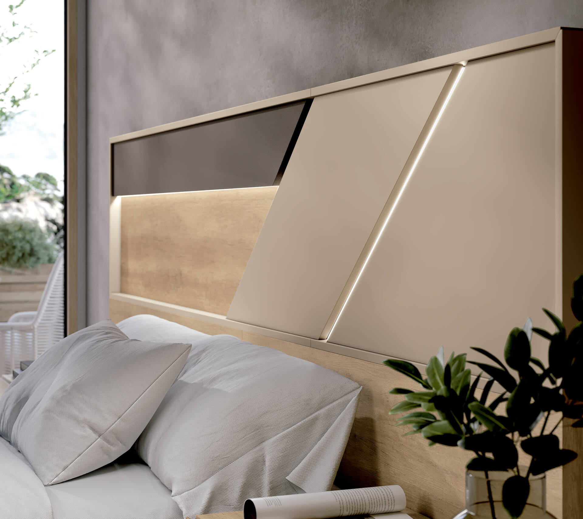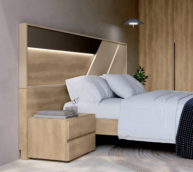 Dormitori modern per matalàs de 135 - 150 - 160 i 180x190 - 200cm amb llum led al capçal opcional, canapè elevable o banyera.