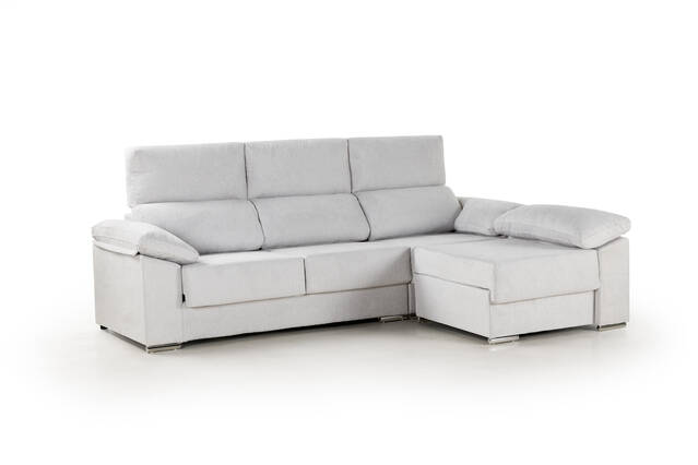 Estructura de madera de pino recubierto con goma espuma. Respaldos y brazos de fibra siliconada mezclada con capas de goma espuma. Cojines de asiento con goma espuma de densidad 25Kg. Patas cromadas. Respaldos reclinables 8 posiciones. Asientos deslizantes. Reversible